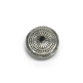 → コンチョはハンディクラフトや何か他のパーツと組み合わせての使用が一般的ですが、単なるパーツと言いきってしまうにはもったいないその個性とデザイン。自作志向のお客様向けにパーツとして販売するのはもちろんのこと、あらかじめショップがコンチョを使った商品を仕上げ、それを顧客にアピールすることも可能です。この場合、サイフなど革製品の飾りボタンとして使われることが多く、衣類や小物類のアクセントとしての使用が一般的です。