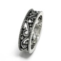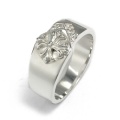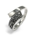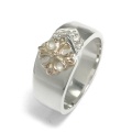 同じフラワー系モチーフでも燻しと白仕上げで全く異なる表情を見せるリング。渋さの燻しと清楚な白仕上げ。