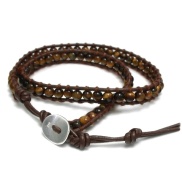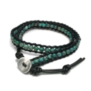 当店で相当な種類の石を扱っておりますのでご希望の石で製作することが可能です。3重巻き、4重巻きなど、ボリューム感のあるものを作ったり、1重巻きやシルバーの代わりに安いブラスボタンを使ってコストを抑えたり、お好みのバリエーションで作ることができます。興味のある業者様はお気軽にご連絡くださいませ。