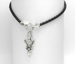 シルバーとレザーの見事なコンビチョーカー。